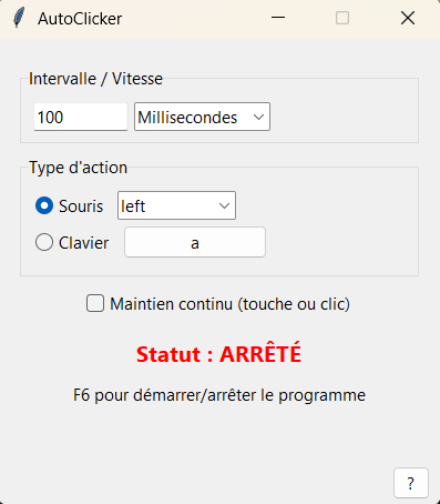 AutoClicker est une application légère et intuitive qui automatise vos clics de souris et pressions de touches clavier sur Windows. Idéal pour les tâches répétitives, les jeux ou simplement pour gagner du temps dans votre quotidien numérique.